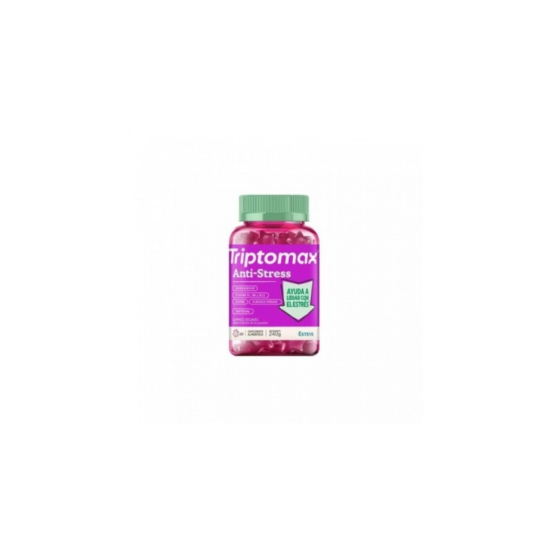Esteve triptomax anti-stress gummies son suplementos masticables diseñados para ayudar a combatir el estrés, la ansiedad y mejorar el bienestar emocional. Contienen una combinación de nutrientes y extractos naturales que contribuyen a la relajación, al equilibrio del ánimo y a mejorar la calidad del sueño. Están indicados para personas que necesitan apoyo en momentos de estrés o tensión emocional. Propiedades y beneficios ayuda a reducir el estrés y la ansiedad gracias al 5-htp y al magnesio. Mejora el estado de ánimo y el bienestar emocional. Contribuye a un sueño de mejor calidad, facilitando la relajación. Fácil de tomar y agradable sabor, ideal para quienes prefieren no tragar pastillas. Complemento natural para apoyar la salud mental en situaciones de tensión o nerviosismo.