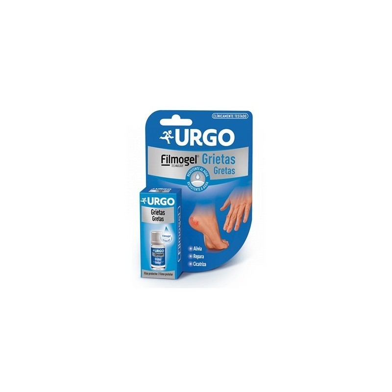 Gracias a la tecnología URGO Filmogel®, la aplicación localizada del producto sobre las grietas permite, al contacto con el aire, la formación de un film protector. URGO Grietas Filmogel® alivia el dolor, protege y evita la reapertura de la grieta. Transparente y resistente al agua, favorece la cicatrización de las grietas.